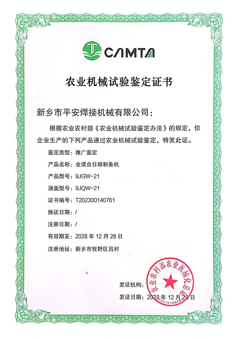 順利通過(guò)國(guó)家農(nóng)機(jī)推廣鑒定